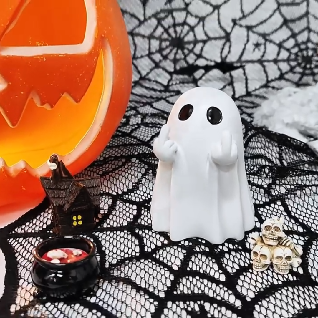 Totally obsessed with this cute little ghost! He is adorable, funny, and just the right size for my home office. Its playful vibe always brings a smile. I love the middle fingers up! Makes me laugh every time I look at it. Great quality and just the perfect pop of spooky-cute for the season! ❤️